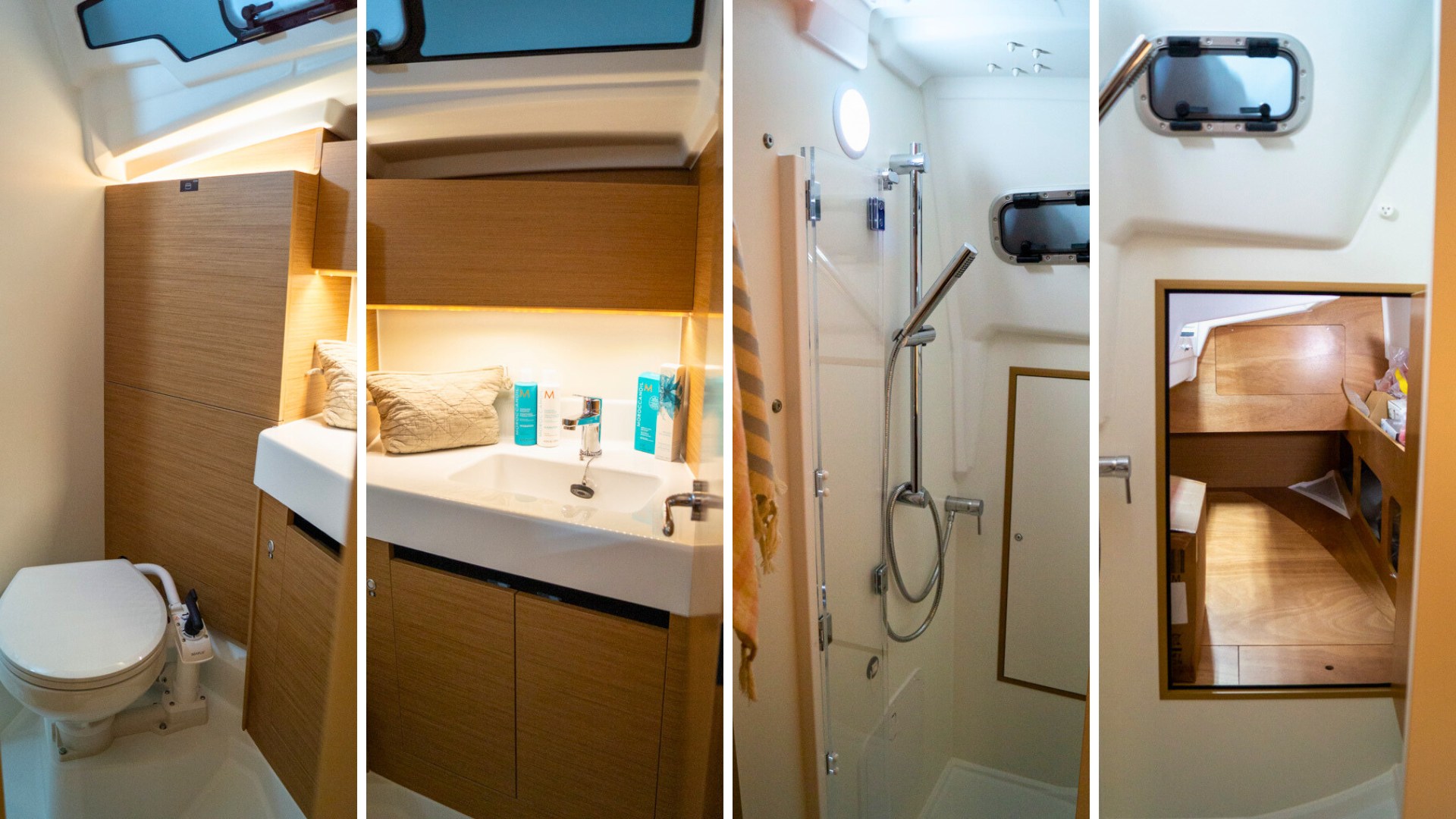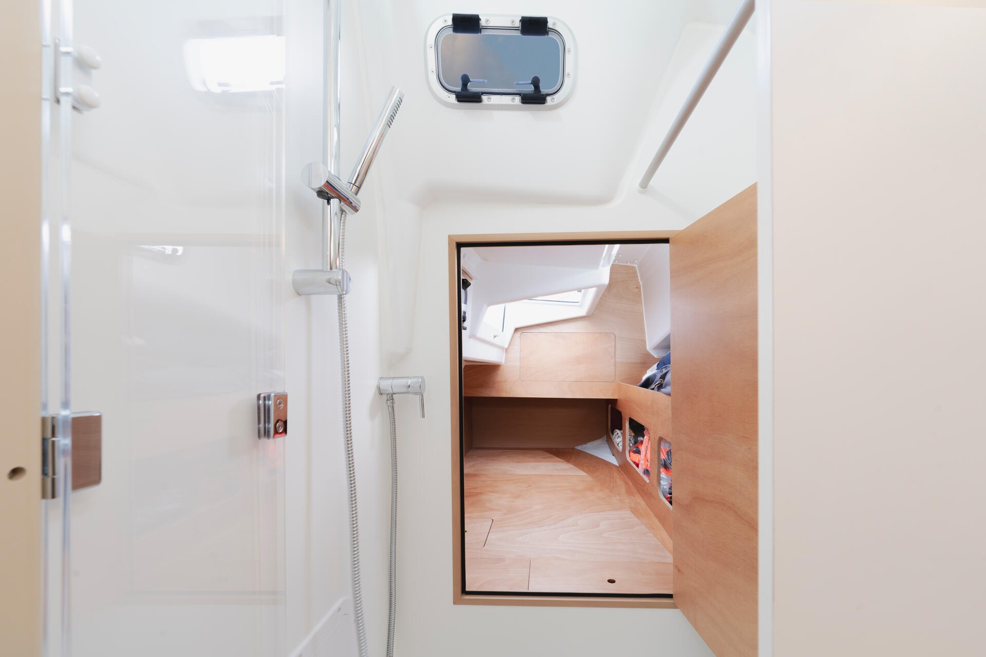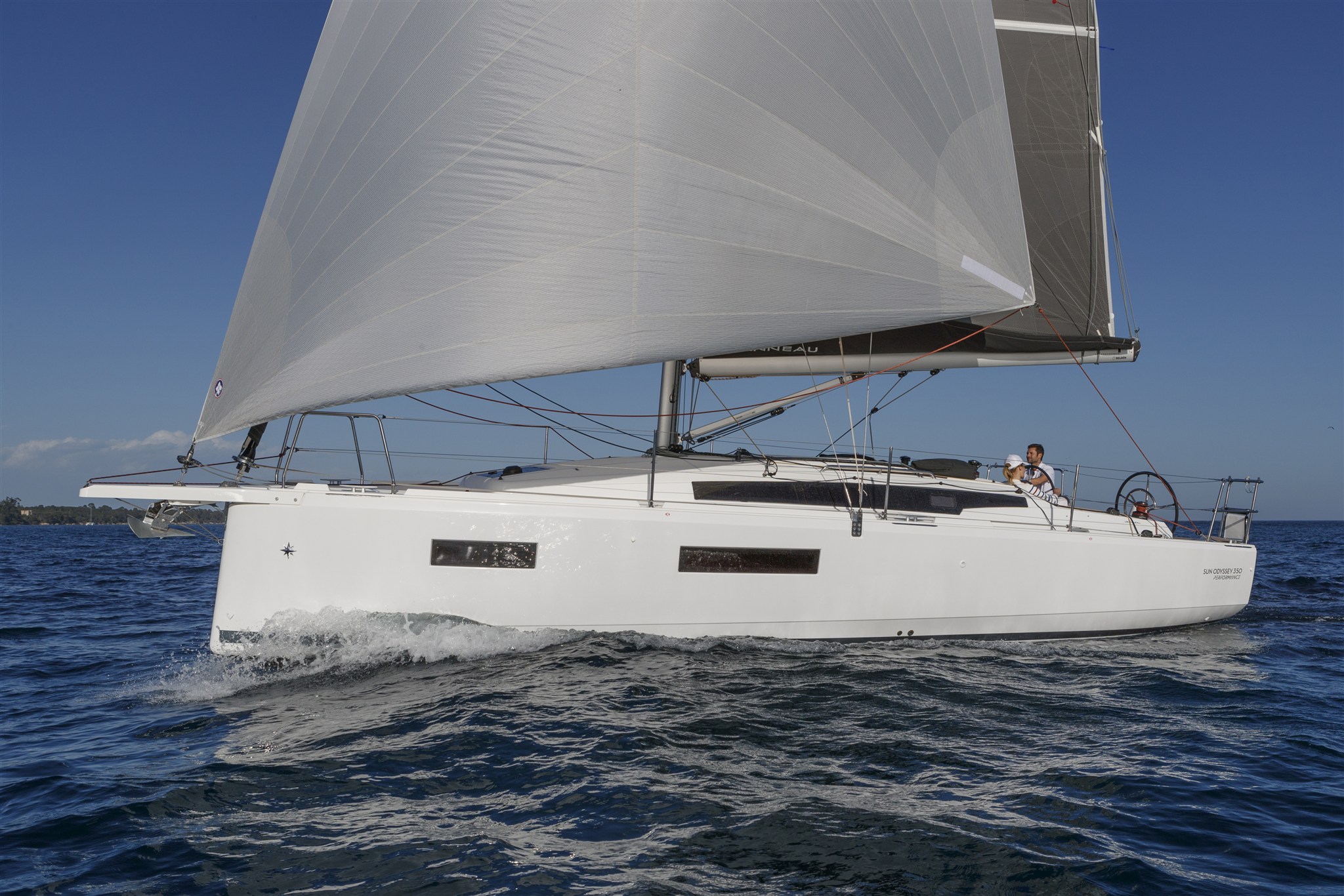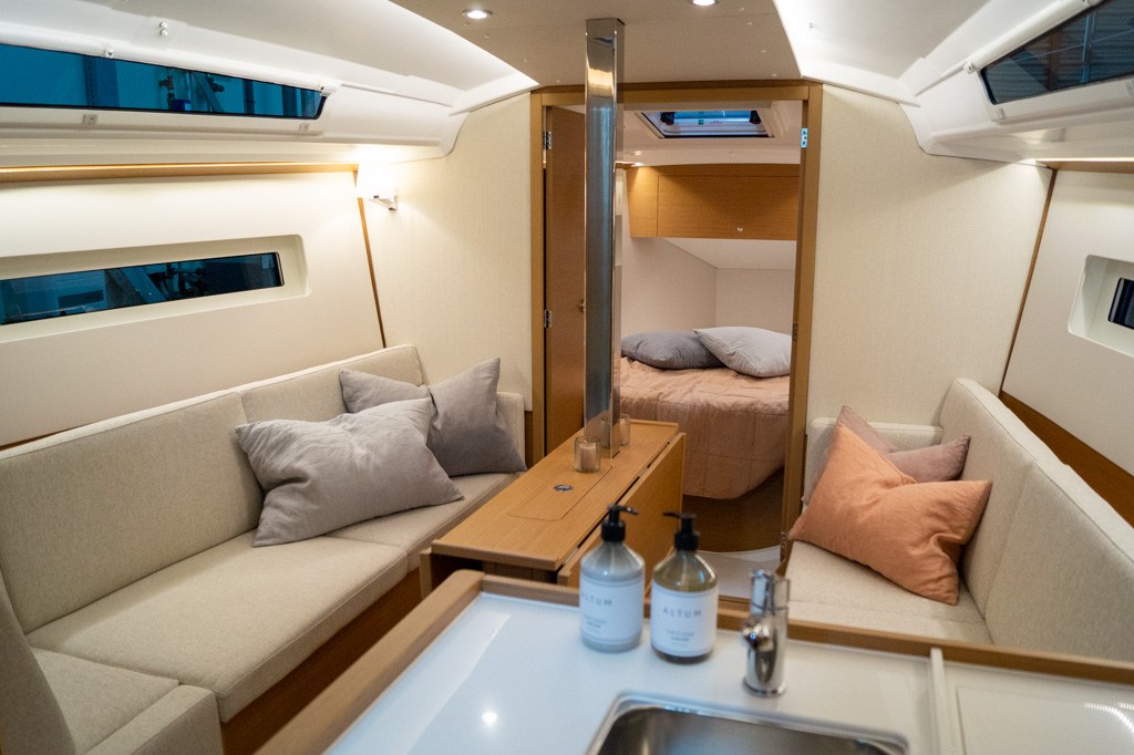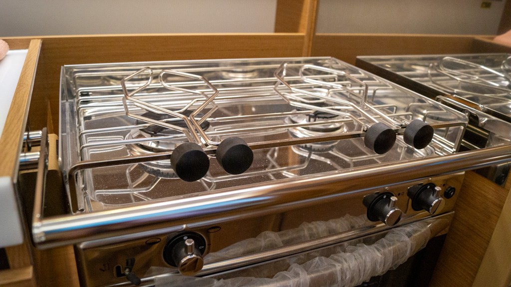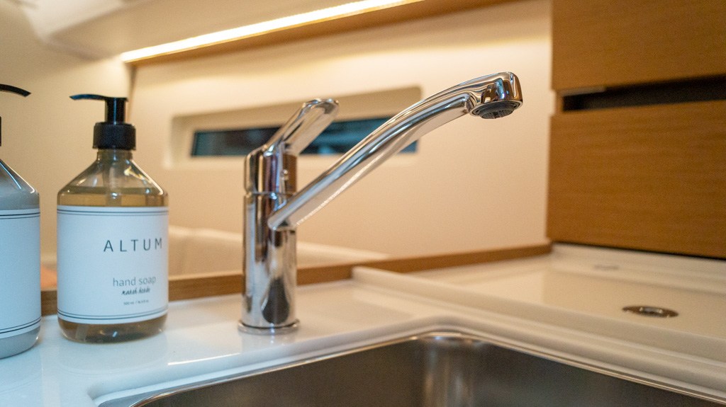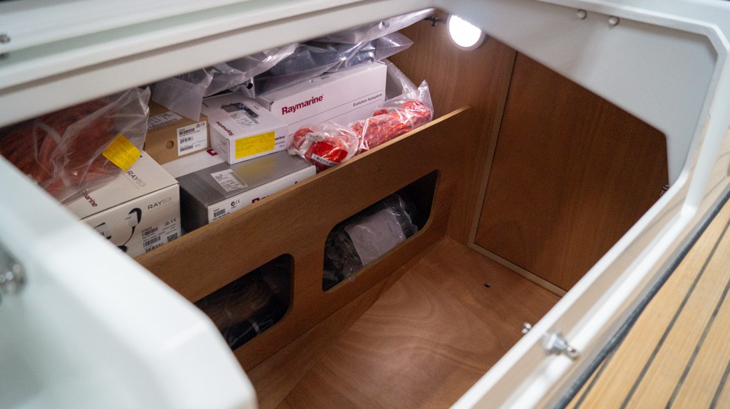 Acculader (40Ah), Accumonitor, Accu's (2x 100 Ah), Anker (16kg Delta anker ), Anker bevestiging (Lijn en ketting), Boegschroef, Buitendouche, Elektrische ankerlier, Elektrische bilgepomp, Gangboord (Unieke doorlopende gangboorden), Handmatige bilgepomp, Kuiptafel, Platform (Uitklapbaar zwemplatform), Railing, Selftailing lier, Stootwillen, Walaansluiting 230V, Walstroomkabel, Windex (Windex 15), Zeerailing.