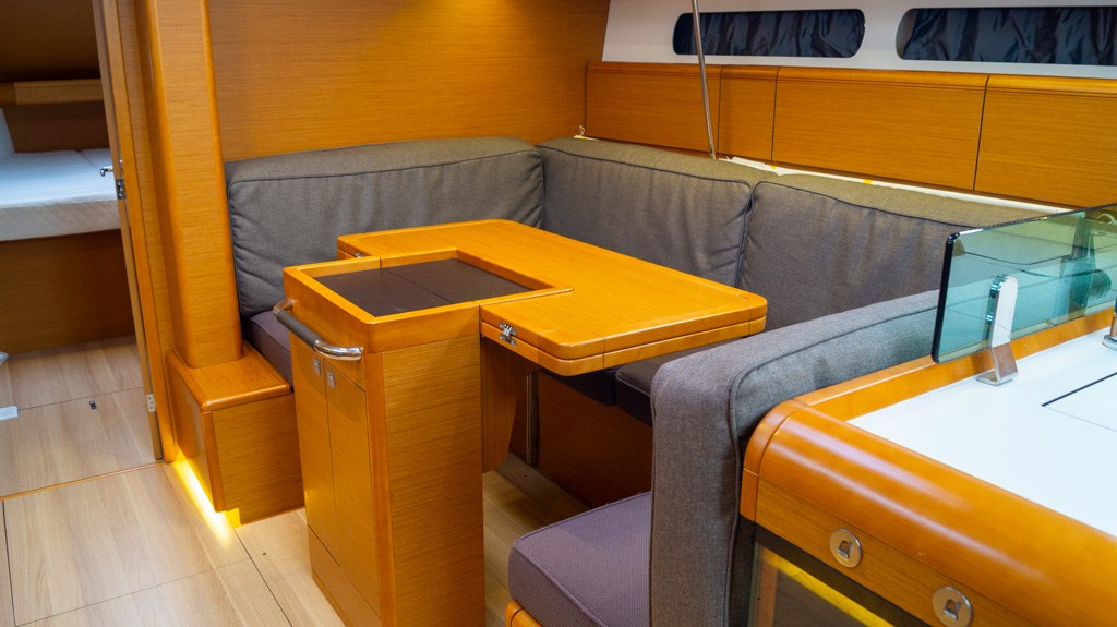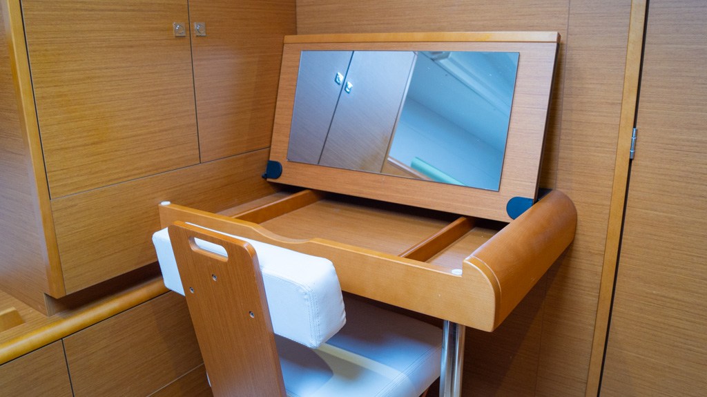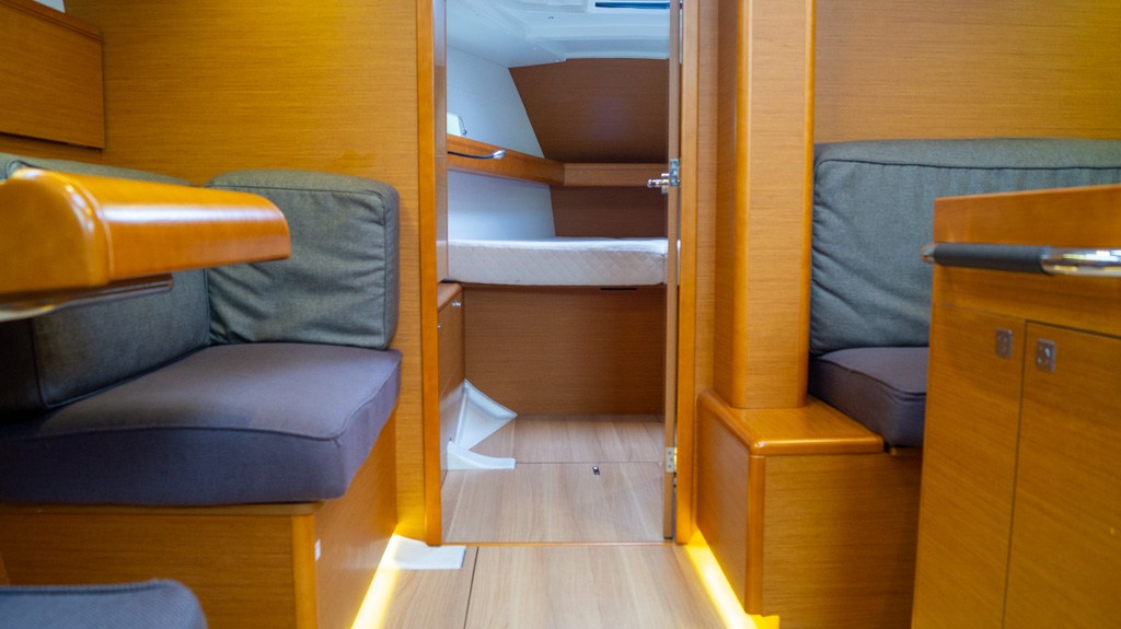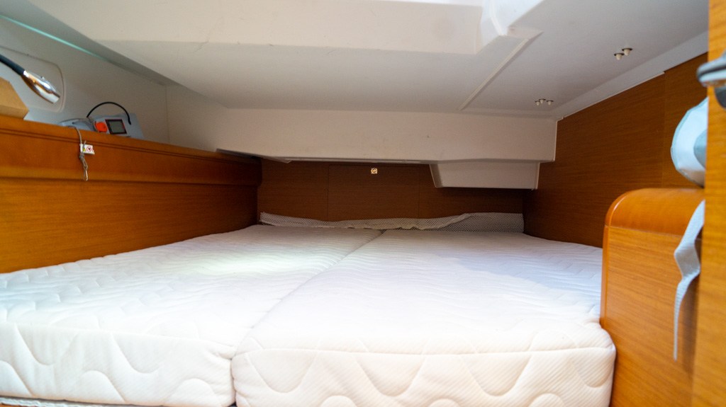 Bimini (Met ledverlichting), Gordijnen, Kussens, Matrassen (Comfortis matrassen in de eigenaarscabine), Sprayhood (Taupe), Stoelbekleding.