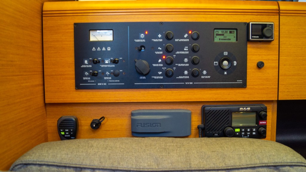 AIS (B&G NAIS 400 incl. antenne splitter), Autopiloot (B&G AC42 Autopilot), Bedieningspaneel, Dieptemeter (B&G Triton), GPS (Furuno), Kaartplotter (B&G Zeus T9 GPS), Log (B&G Triton 41), Marifoon (B&G V50), Meetinstrumenten, Navigatieverlichting, Windmeter (B&G Triton).