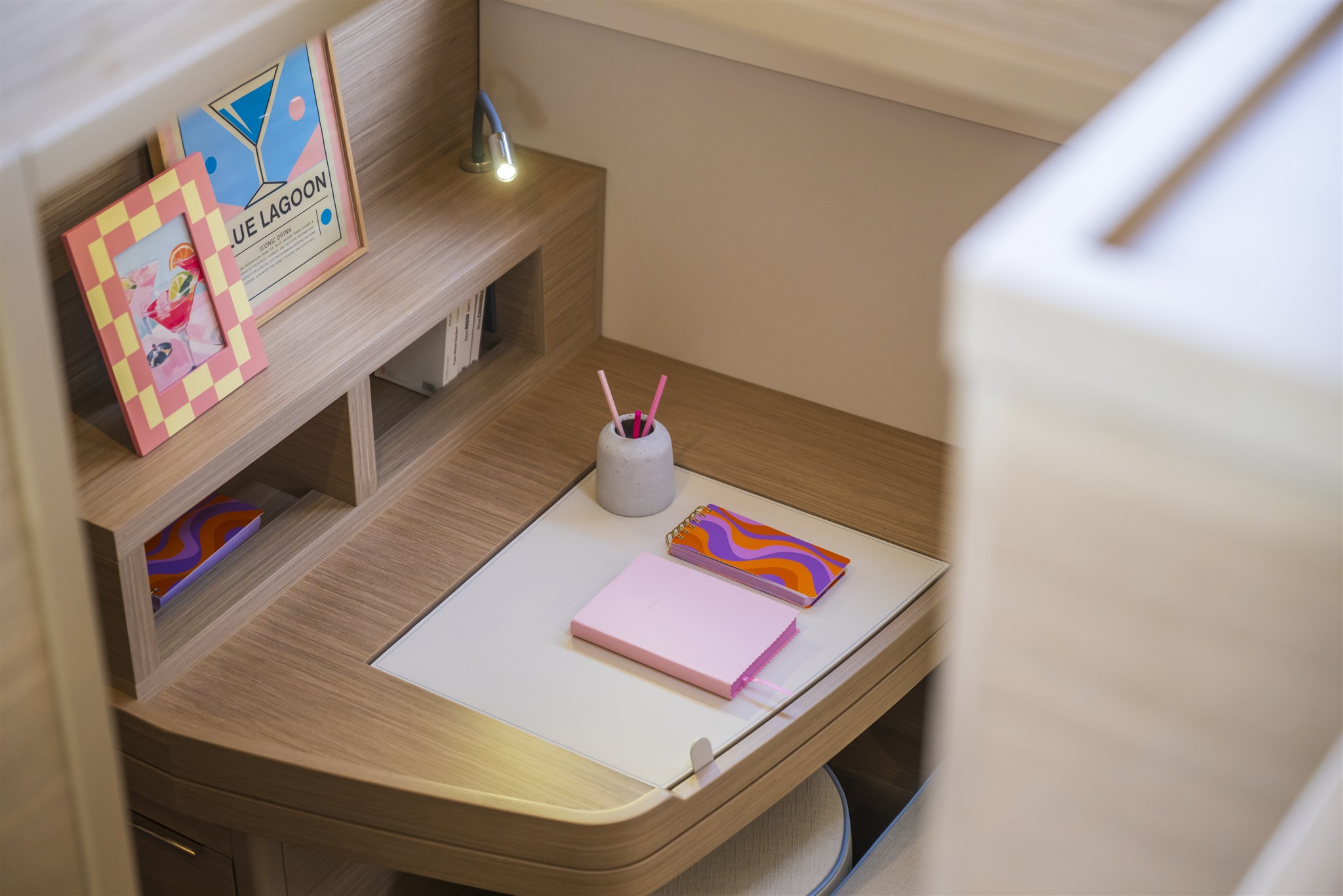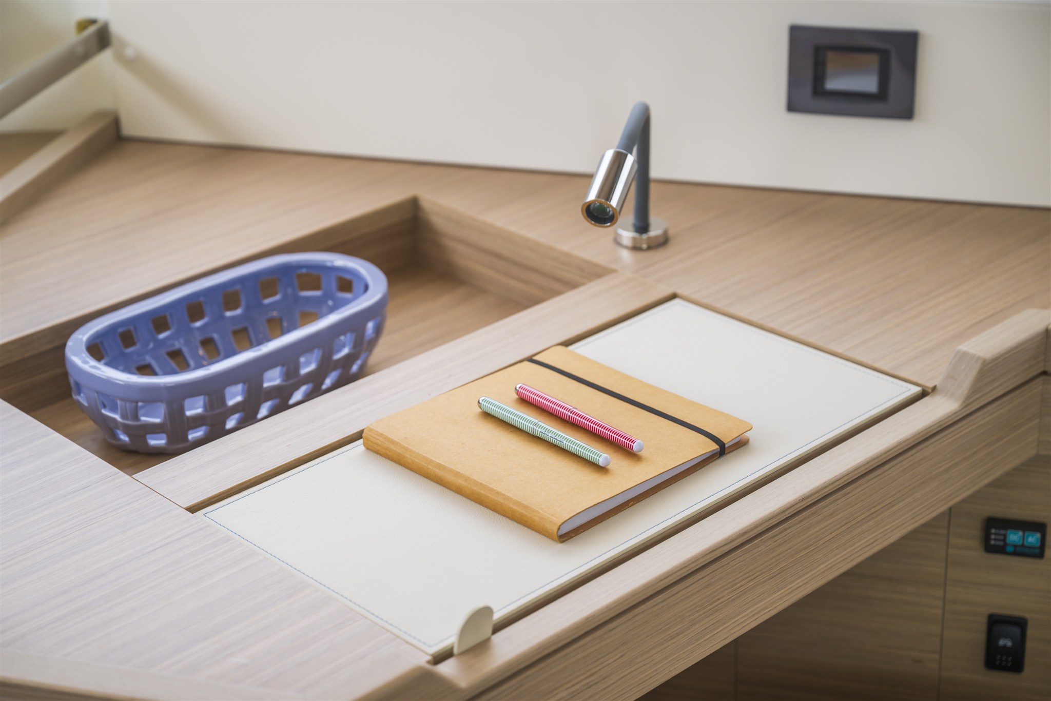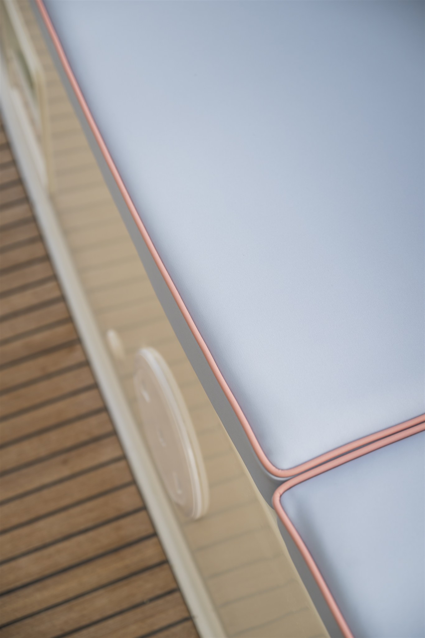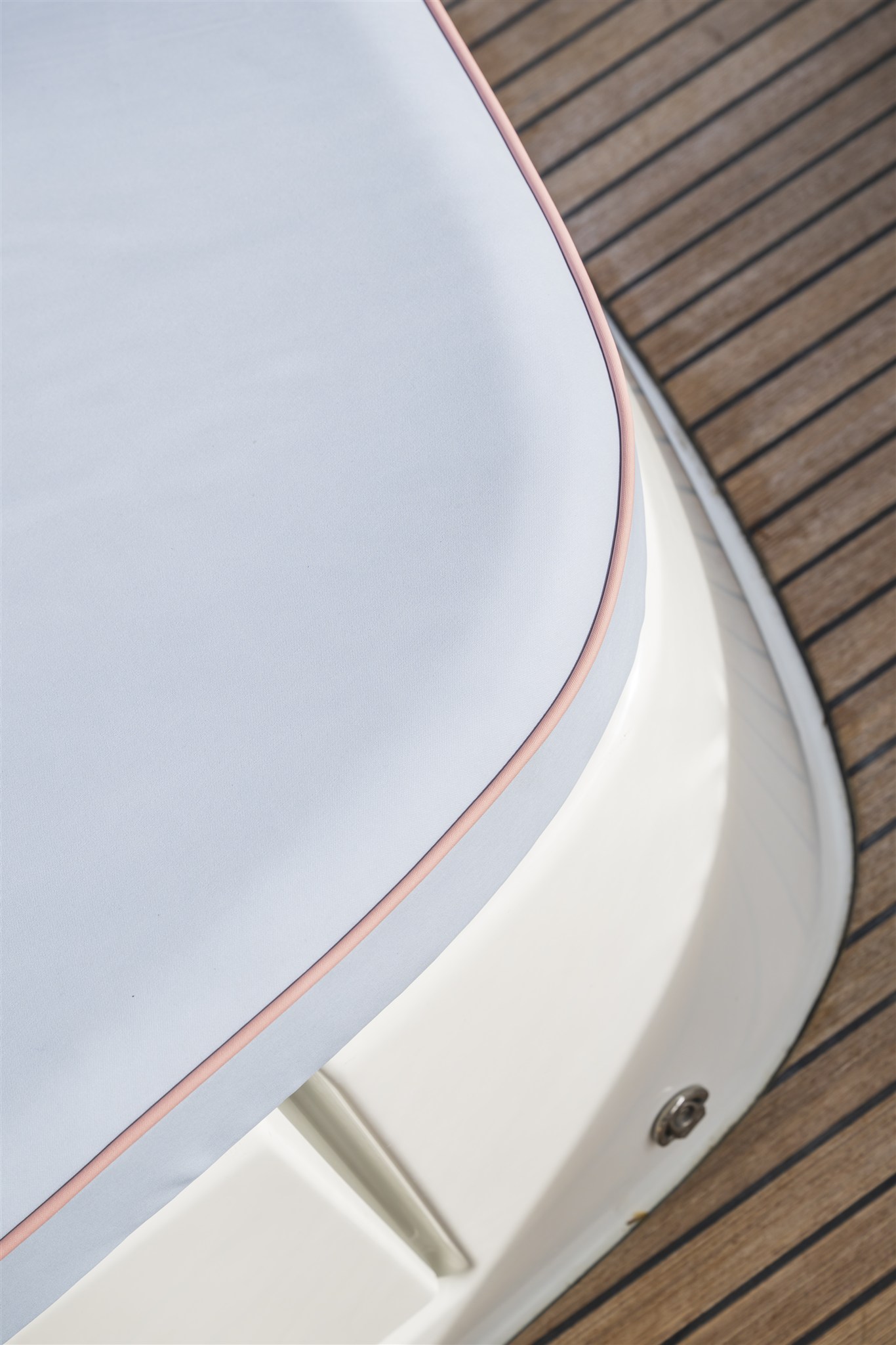 Acculader, Accu's, Alternator, Anker, Bijboot, Boegschroef, Buitendouche (deck), Dubbele besturing, Elektrische bilgepomp, Elektrische lier, Handmatige bilgepomp, Hekschroef, Hydraulische lier, Kraan voor bijboot, Kraan voor bijboot, Kuiptafel, Platform, Stabilisatoren, Teakdek, Trailer, Walaansluiting 230V, Windgenerator, Zonnepanelen, Zwemtrap.