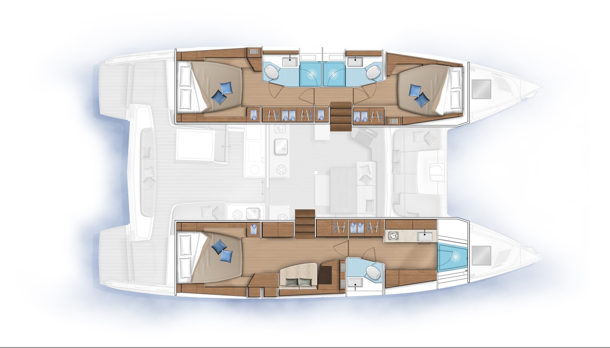 Airconditioning, Omvormer, Satellietinternetverbinding, Verwarming, Warmwater boiler, Watermaker.